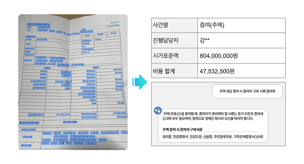 LLM 및 RAG 기술을 접목해 추출 텍스트를 구조화된 지식 데이터로 전환함으로써, 이미지 문서에 내재된 지식을 효과적으로 활용할 수 있습니다.