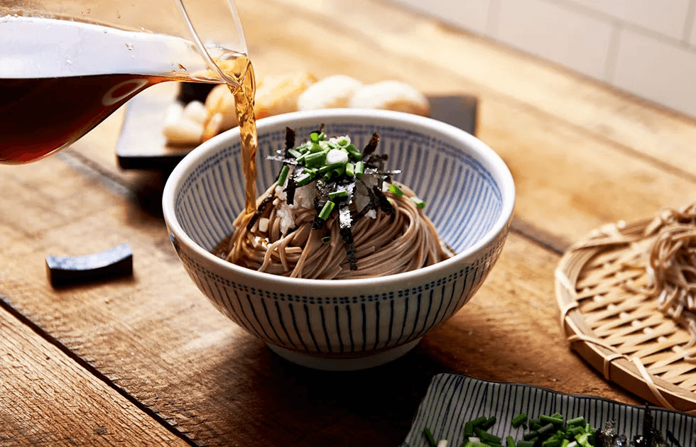 It is a Japanese buckwheat noodle dish made by dissolving pickled radish and wasabi in a tsuyu broth made with bonito flakes and soy sauce, and dipping or dipping the noodles into the soup